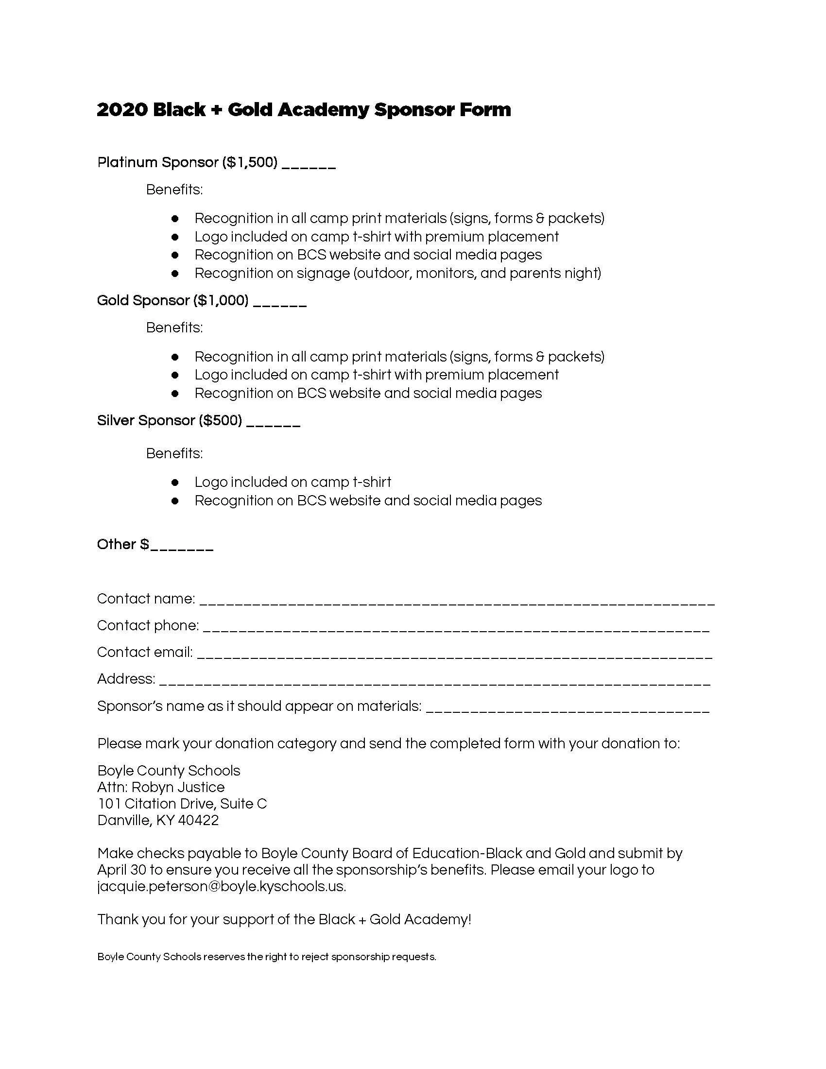 Boyle County Schools Black + Gold Academy Sponsors 2020